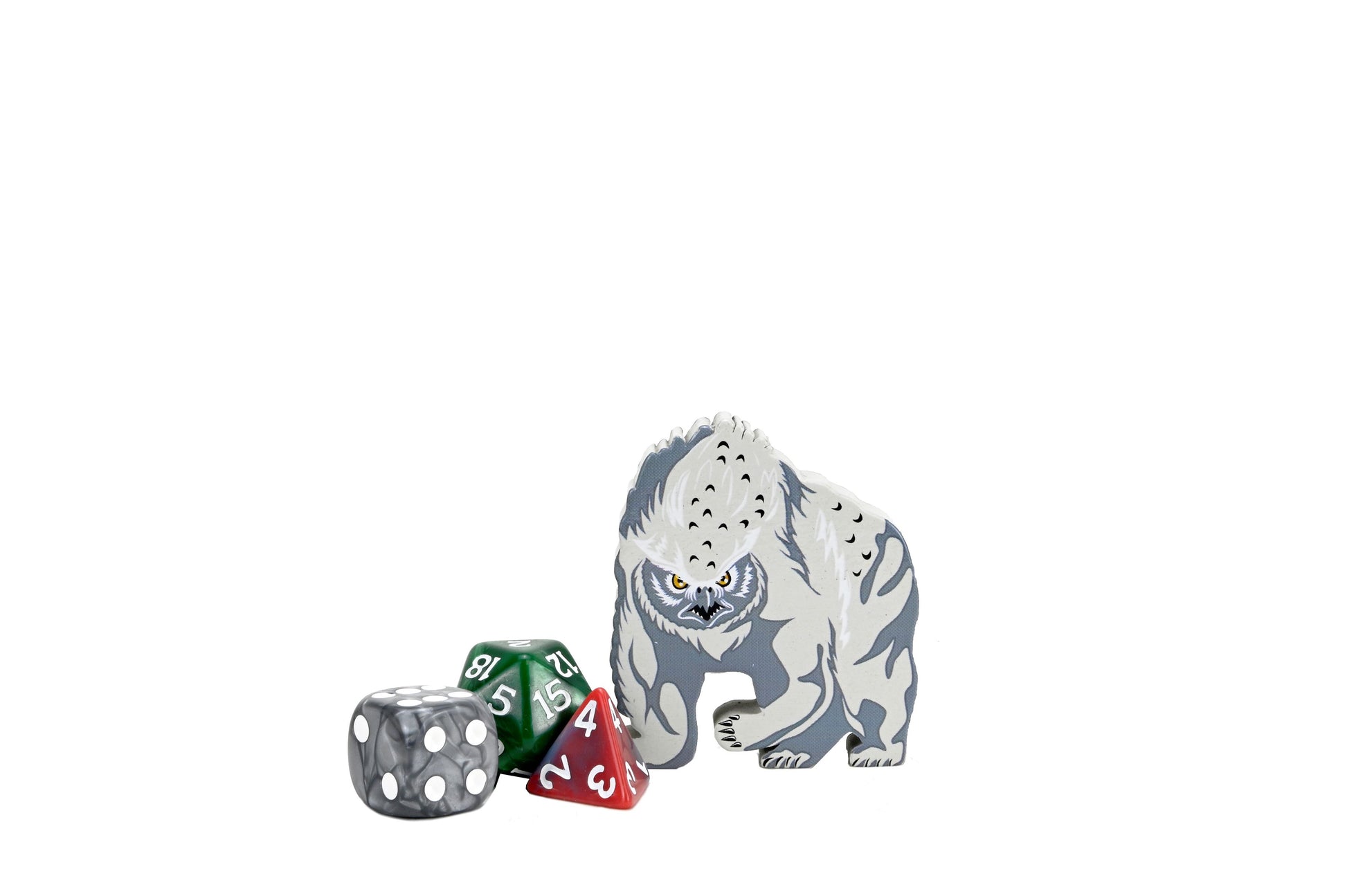 This Snowy Owlbear stands 2 inches tall - perfectly sized to add some flare to your desk or to bring some extra excitement to your next D&D session!
