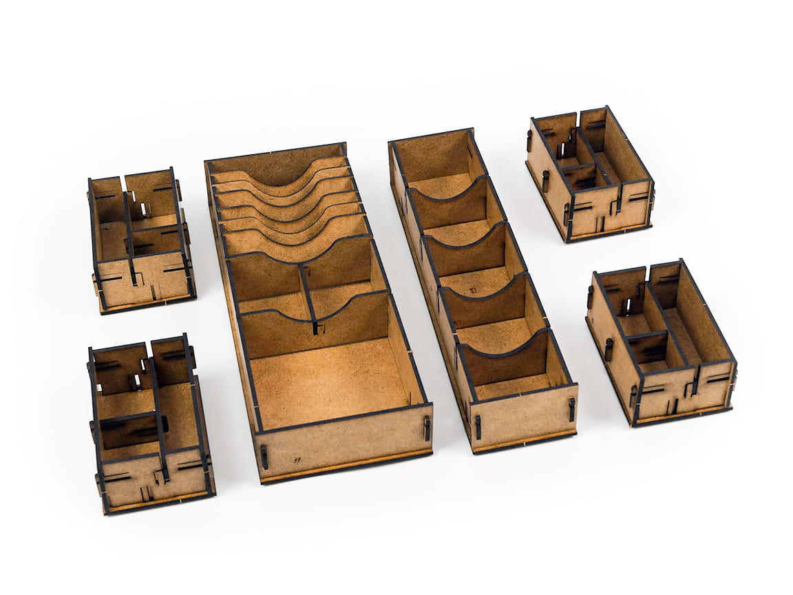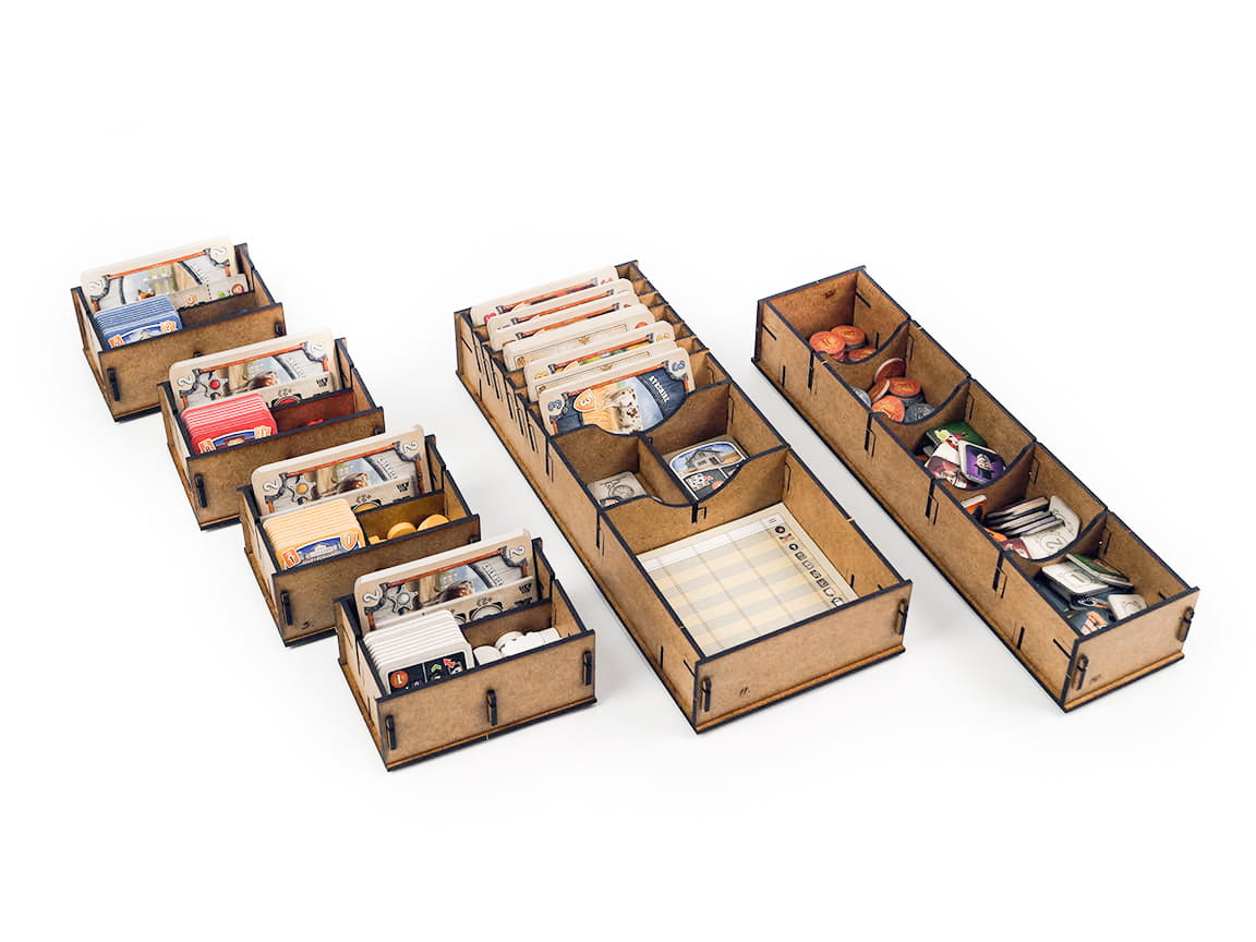 The insert is durable and made of high-quality HDF. To assemble it, there is no glue required. It allows you to hold all components inside the box. You can see the suggested components setup on the pictures. This offer concerns only insert. The game is not included.