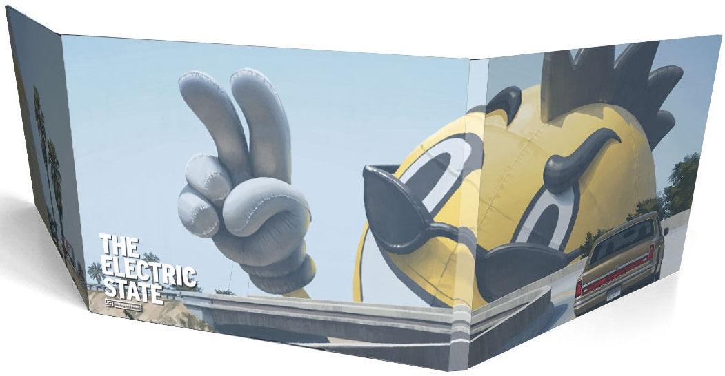A deluxe Gamemaster Screen in landscape format for The Electric State Roleplaying Game. It features beautiful art on the outside and a host of useful tables and important information on the inside, while keeping the GM’s plans hidden from the eyes of inquisitive players.