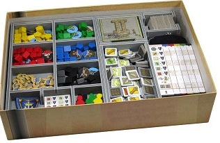 This insert is designed to be compatible with Orleans®. The design provides both efficient storage and improved game play. Many of the trays can be utilised during the game, and they greatly aid set-up and clear-away times. The boards and player boards act as a lid on top of the trays.
