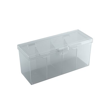 Full decks, dice, tokens or 320 double-sleeved cards: there is a lot that the Fourtress can hold and protect! This sturdy box is available in 5 different semi-transparent colors, allowing its contents to be easily identified. The integrated lock keeps it safely closed, while two inner walls can be removed to create bigger compartments. The boxes are stackable, so they are both perfect travel companions and a great storage solution at home.