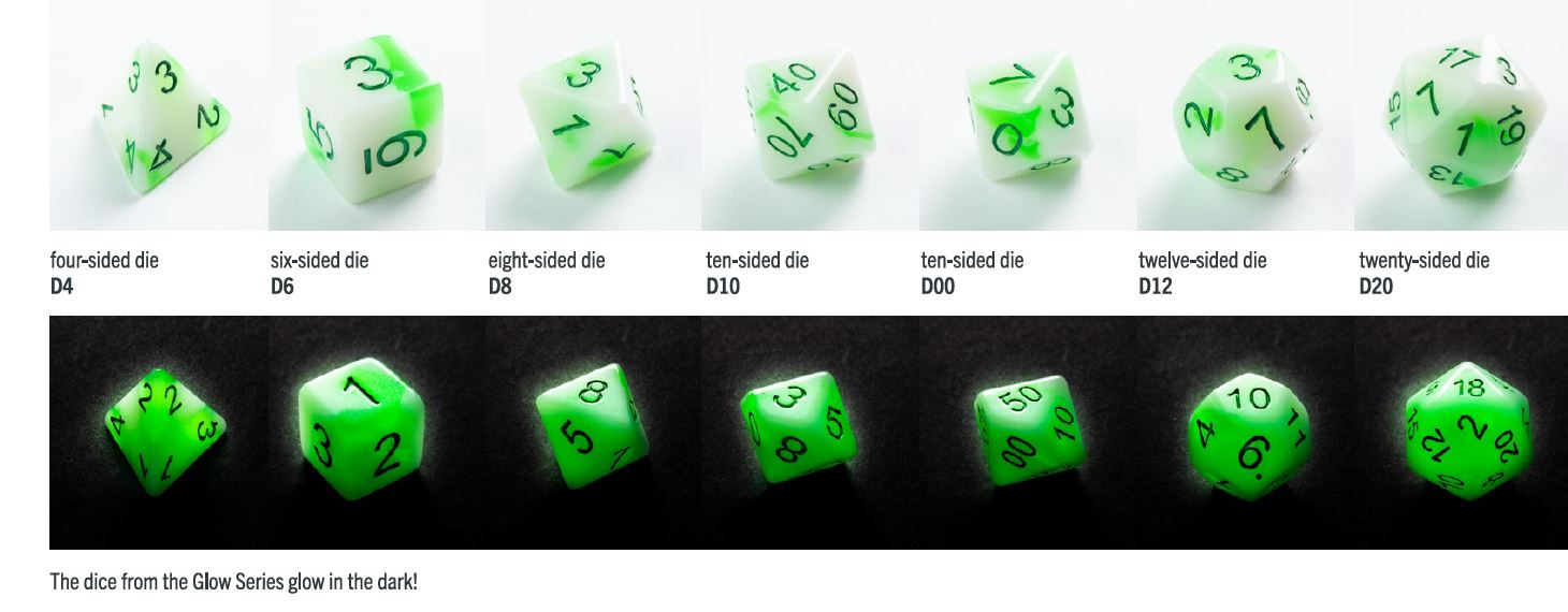 Glow Series Dice features: