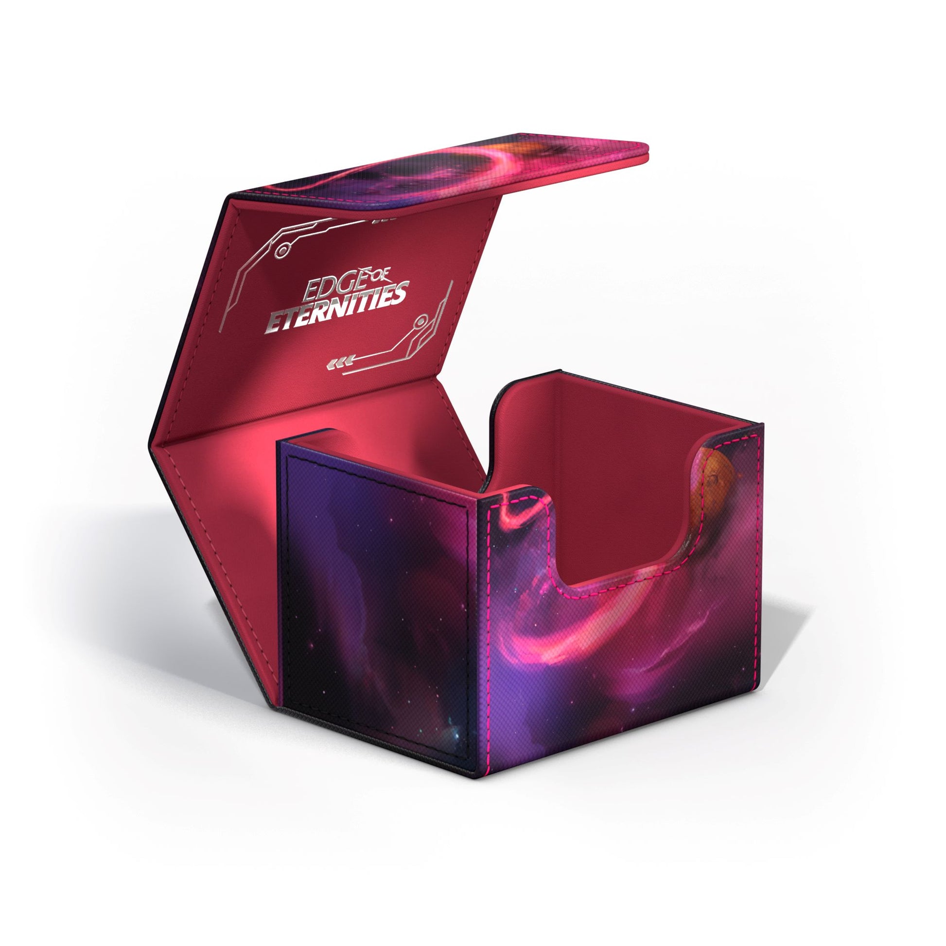The Sidewinder 100+ Xenoskin is a high-quality TCG deck box that offers premium card protection thanks to its resistant Xenoskin material, microfiber inner lining, and strong magnetic closure, while still granting easy and convenient access to the deck inside. The deck boxes are printed in full color with officially licensed artworks from Magic: The Gathering’s upcoming set "Edge of Eternities". The Sidewinder 100+ Xenoskin is optimized to hold 100 double-sleeved or 120 single-sleeved cards in Ultimate Guard sleeves.