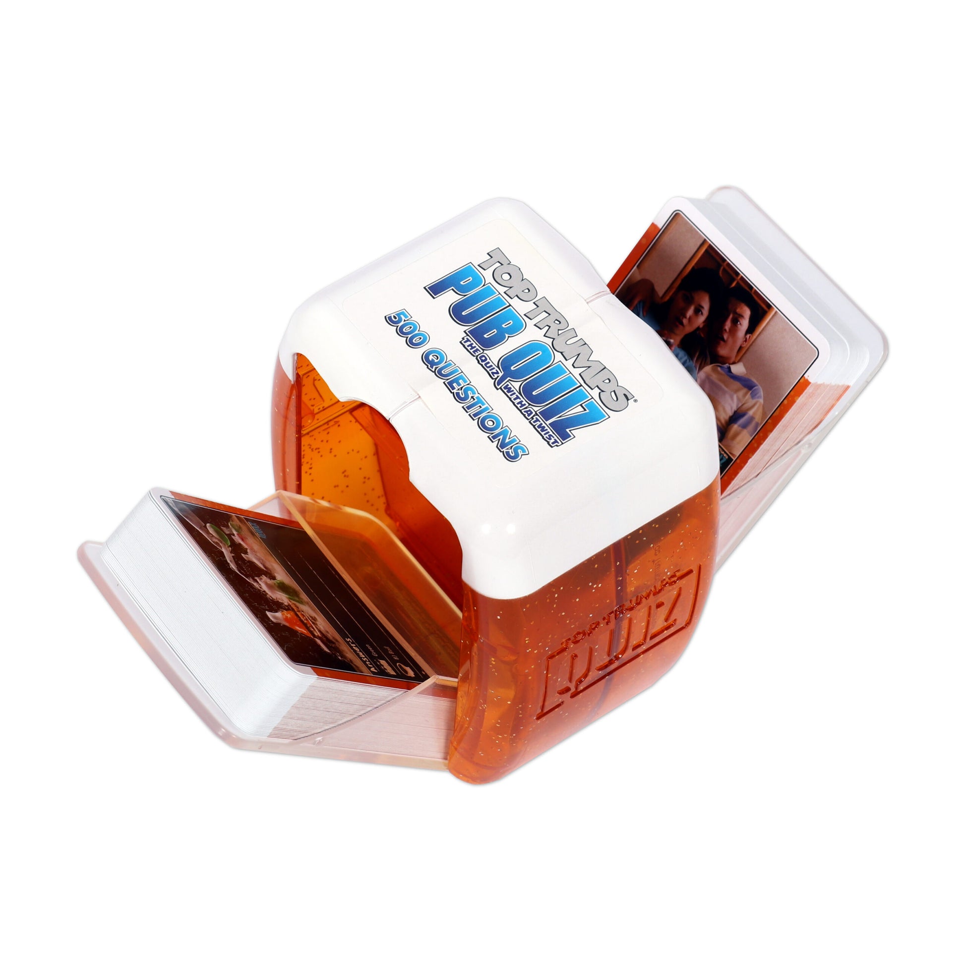 Grab a pint and pick out your team name because Top Trumps Quiz with a Twist now has a Pub Quiz edition! 500 questions on 5 different categories: Sports, Music, Film and TV, Science and General Knowledge. With cards on every subject from Art, Animals, Adverts and Acronyms, to Toys, Transport, Technology, and Theme Tunes, with Decades, Food and Drink, and even Weather covered along the way, there's something to test the brains of all ages and interests. Deal 5 cards each, ask the first question and see if your opponent gets it right or not.