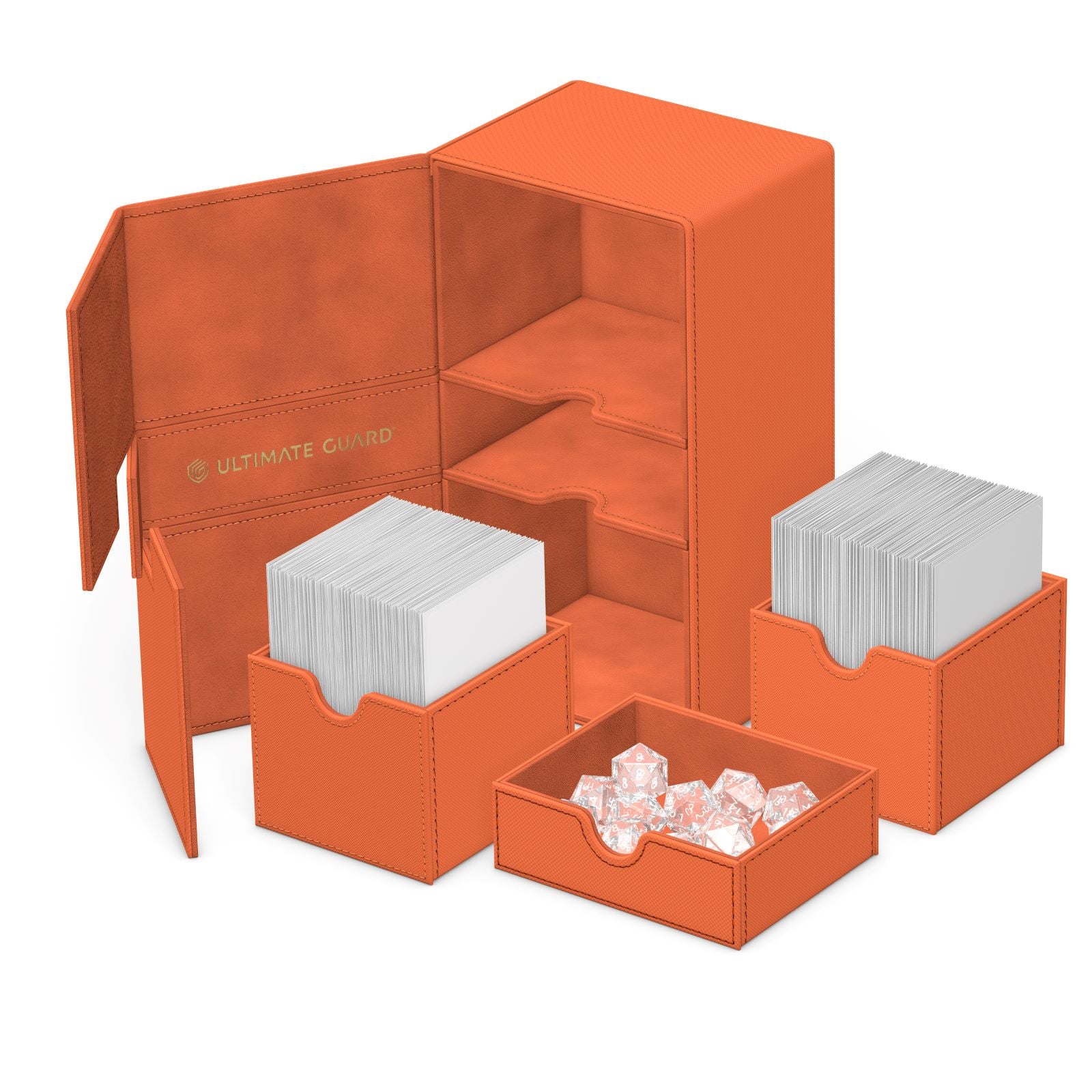 - Designed for 200 double-sleeved or 240 single-sleeved cards in Ultimate Guard Sleeves