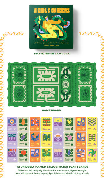 Vicious Gardens is a card game that combines the joy of gardening with the thrill of being a total jerk. Strategically cultivate your garden, harvest plants, and sabotage others in a cut-throat competition.